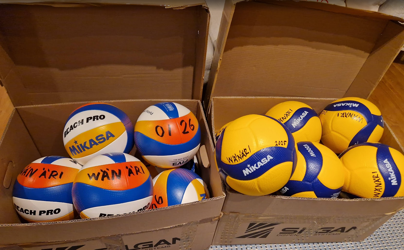 Tulevan kesän uudet biitsi- ja kuluvan talvikauden maakuntasarjajoukkueiden lentispallot ovat saapuneet ja odottavat kovakätisisiä läpsyttelijöitä 🙂