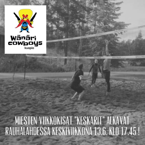 Wänäri Cowboys järjestää kesällä 2019 junioreille beach volley treenejä Rauhalahdessa (Rauhankatu 3, 70700 Kuopio) kerran viikossa tiistaisin klo: 16.15-17.45. Junnutreeneihin voivat osallistua kaikki U14, U16, U18 sarjoihin kuuluvat tyttö- ja poika pelaajat.